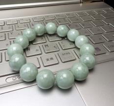 14mm玉本翡翠(ジェイド)16個ブレスレット(シリコンワイヤー 腕サイズ18.1~19.0cm用) 【Lサイズ】
