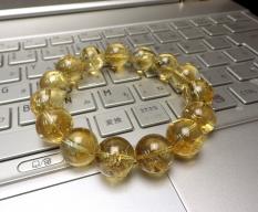 14mm玉シトリン14個ブレスレット(シリコンワイヤー 腕サイズ15.1~16.5cm用) 【Sサイズ】