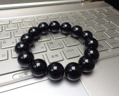 14mm玉モリオン(黒水晶)16個ブレスレット(シリコンワイヤー 腕サイズ18.1~19.0cm用) 【Lサイズ】